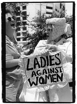 ![]() Thought-provoking images are not made on a day at the beach; Lacy's pictures have been made in the middle of a riot, while free-falling from 10,000 feet and on a desperate search for water deep in a desert canyon of the Sierra Madre. Lacy conceded, "Sometimes you have to forego safety to be in the right place at the right time to make something meaningful." Mark Lacy's decisive moments have convinced people to consider new ideas. IN THE PHOTO ABOVE Lacy makes photographs from a provocative and sometimes controversial viewpoint, and he photographs people with different points of view. An activist from the National Organization for Women laughs as she is confronted by a protester delivering a sarcastic message that progressive women are giving ladies a bad name. ADDITIONAL CONTENTS At the conclusion of the article is an interview with Mark Lacy on photography and culture, as well as further exploration of his photographic subjects. |