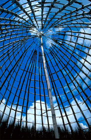 IN THE PHOTO ABOVE Lacy made this image of a reconstructed Caddoan dwelling while studying cultures of the Texas Gulf Coast.