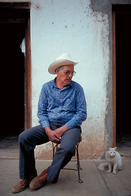 ![]() IN THE PHOTO ABOVE Señor Manuel y el gato blanco observe the slow pace of activity in Batopilas. Lacy made this photograph as he observed the similar posture of cat and owner. Lacy commented, "With everything I do, I try to encourage people to improve their quality of life by helping them become culturally literate and open their world to great diverse interests. KTRU is an important place where people develop their ability to think independently. The expeditions and photography presentations I organize foremost have an educational benefit."