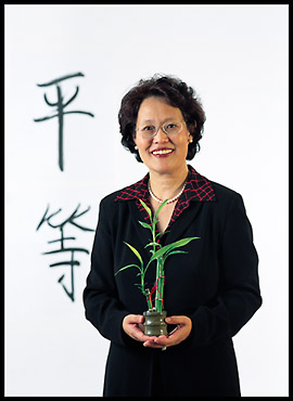 Lacy photographed the above faculty for a university feature magazine. The photograph on the left is made in a studio, while the image on the right is made in an outdoor daylight setting and controlled with location lighting and set design to create a specific predetermined effect.
