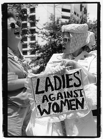 ![]() Thought-provoking images are not made on a day at the beach; Lacy's pictures have been made in the middle of a riot, while free-falling from 10,000 feet and on a desperate search for water deep in a desert canyon of the Sierra Madre. Lacy conceded, "Sometimes you have to forego safety to be in the right place at the right time to make something meaningful." Mark Lacy's decisive moments have convinced people to consider new ideas. IN THE PHOTO ABOVE Lacy makes photographs from a provocative and sometimes controversial viewpoint, and he photographs people with different points of view. An activist from the National Organization for Women laughs as she is confronted by a protester delivering a sarcastic message that progressive women are giving ladies a bad name. ADDITIONAL CONTENTS At the conclusion of the article is an interview with Mark Lacy on photography and culture, as well as further exploration of his photographic subjects. |